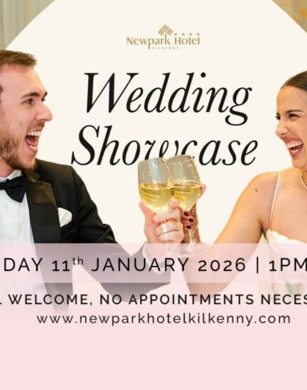 You’re invited to the Newpark Hotel January Wedding Showcase on Sunday, 11th January from 1pm to 5pm. Join us for an afternoon designed especially for couples dreaming of their perfect wedding day. Begin your visit with a glass of bubbles and delicious canapés as you explore our beautifully dressed ballroom and wander through our enchanting wedding garden, perfect spaces to imagine saying “I do” in a setting crafted with luxury, warmth, and charm.